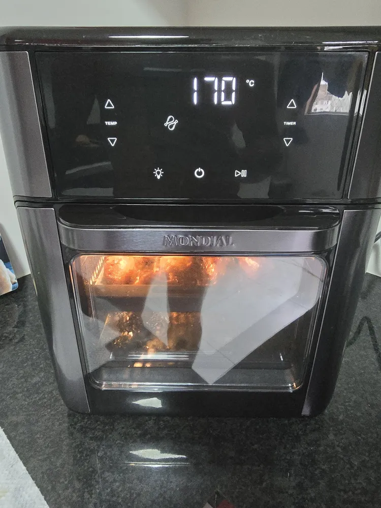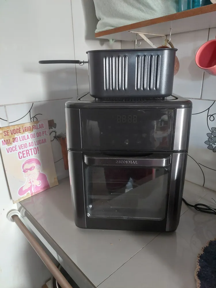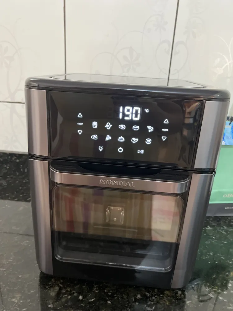 É um excelente produto, frita muito bem, a luz para facilitar a visualização do alimento é uma função indispensável, unicas observações que para mim são negativas, a alça do cesto é difícil de prender tenha cuidado pq é tudo muito próximo e se não usar uma luva pode se queimar, e a tampa deveria ter alguma proteção, para no momento de puxar as prateleiras o óleo que pinga do alimento não caia e se infiltre entre o vidro e as partes plásticas da porta. Recomendo colocar um pano de prato ou um perfex para evitar aborrecimento com a sujeita na parte citada.